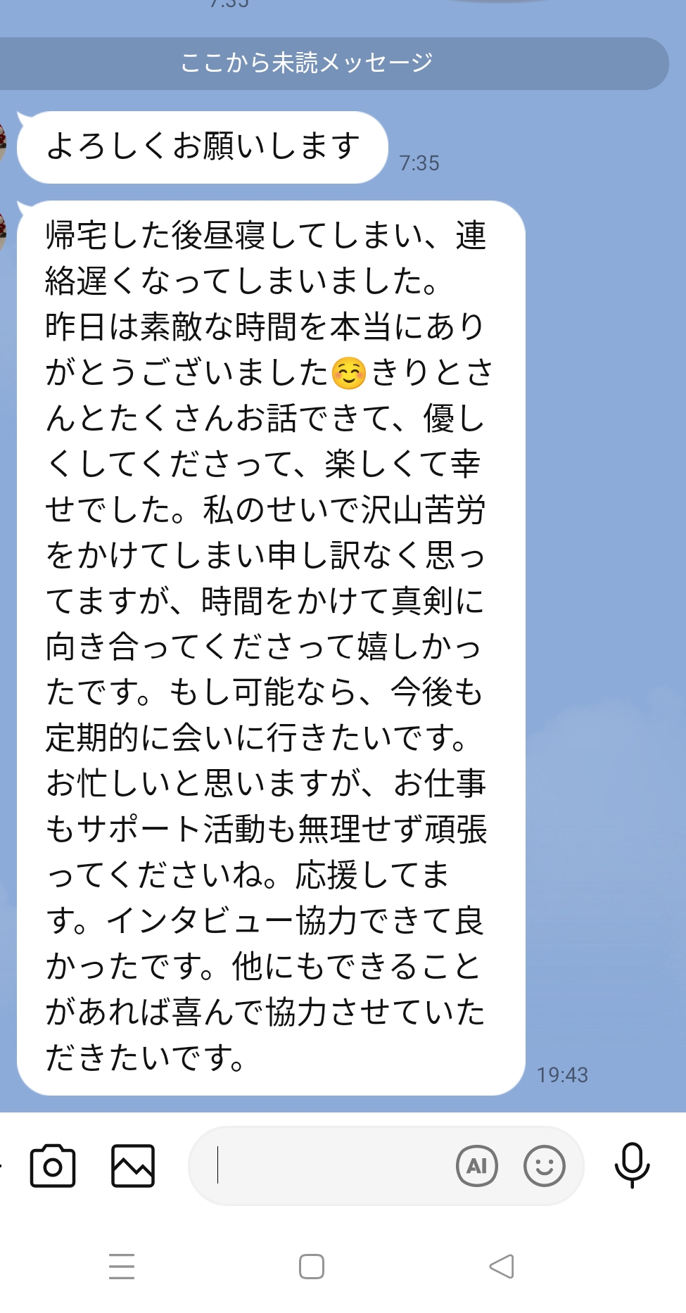 福岡県 23歳 会社員 Nさんからのお礼のLINE