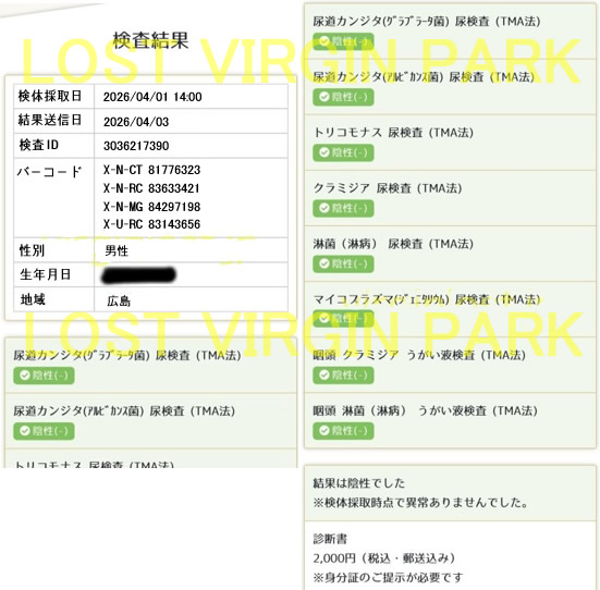 こちらのページでは、きりとの性病検査結果(画像)を掲載しております。
